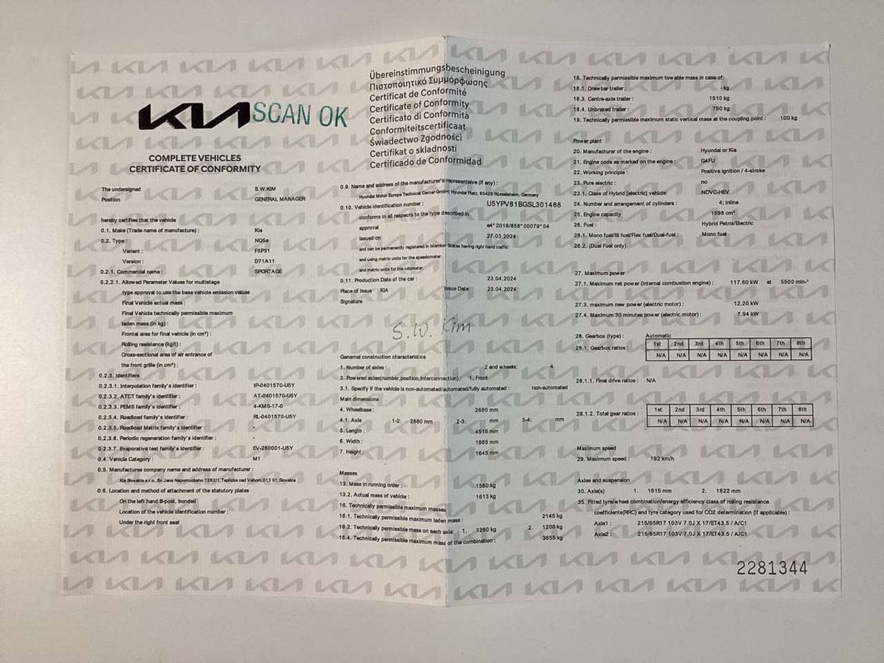 Numer VIN: